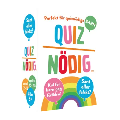 Det här är ett spel för mysiga hemmakvällar med familjen eller långa resor i bilen! Quiznödig sant eller falskt innehåller över 200 roliga och intressanta frågor där du ska skilja otroliga sanningar från knasiga lögner. Enkelt roligt spel där den som svarar rätt vinner helt enkelt. Ett perfekt spel for alla som älskar quiz– på kalaset, på resan eller hemma på fredagsmyset.